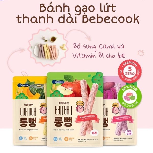 Bánh gạo lứt thanh dài Bebecook là mẫu bánh mới nhất trong bộ sưu tập đồ ăn nhẹ cho bé yêu của hãng Bebecook nè